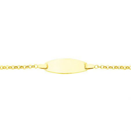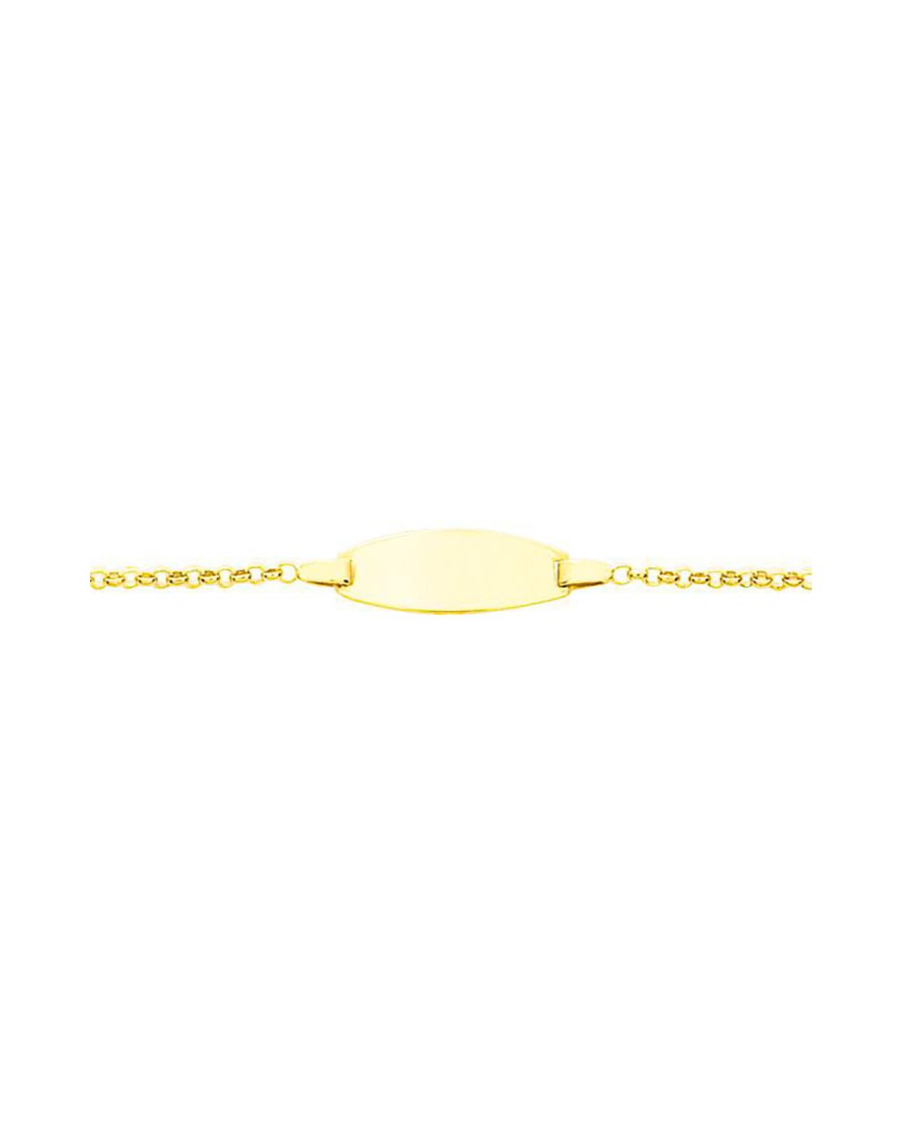 This child's number is a 9-carat gold bracelet with a small plaque that can be engraved with a first name and a date on a belcher chain. This bracelet is adjustable in length.