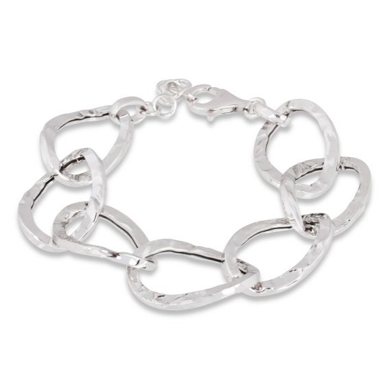 This 925 silver bracelet is a bracelet with hammered links. The mesh measures 19mm wide by 27mm long.