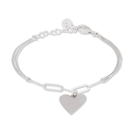 This bracelet is a double bracelet with rectangular links and a heart measuring 15mm high by 13mm wide.