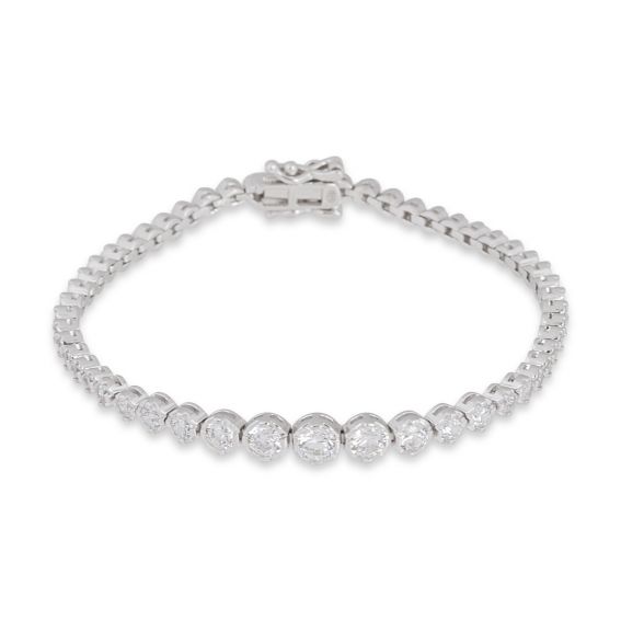 This bracelet is a tennis bracelet for women with different zirconium oxide stones of different sizes and forming a gradient of stones. The smallest measures 3mm and the largest 6mm.