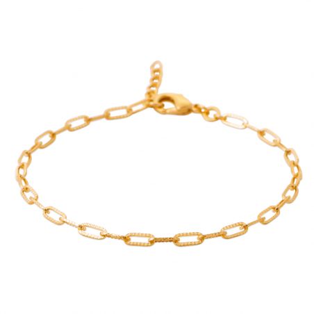 This bracelet is an 18-carat gold-plated bracelet made of small ribbed links. This bracelet is adjustable in length from 16 to 18cm.