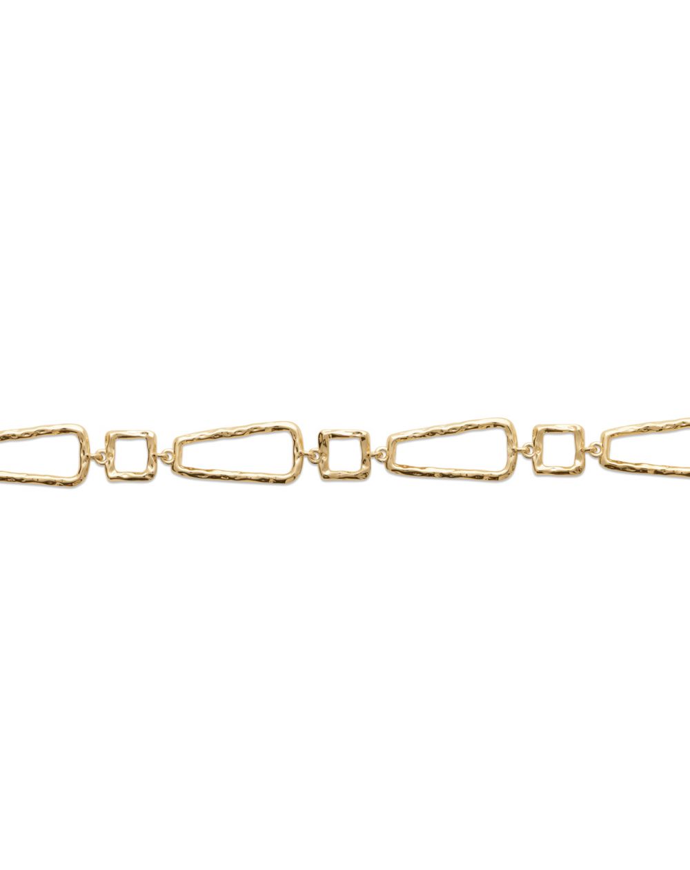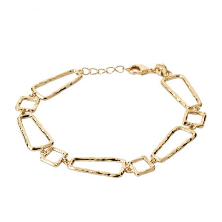 Gold plated bracelet with varied rectangular links, shiny finish, for a bold and structured look.