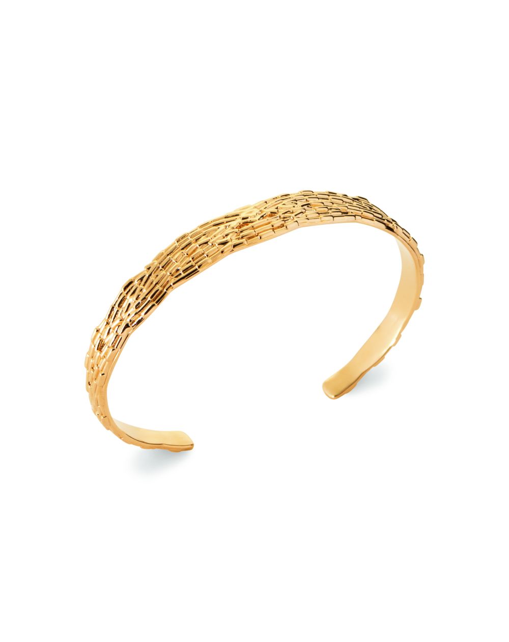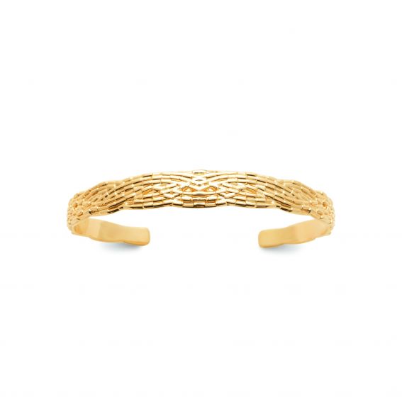 This gold-plated slave bracelet is distinguished by its finely braided design. The delicate texture and shiny finishes add a touch of elegance and sophistication. Its open shape allows for a comfortable fit, making this bracelet a chic and versatile accessory to complement any outfit.