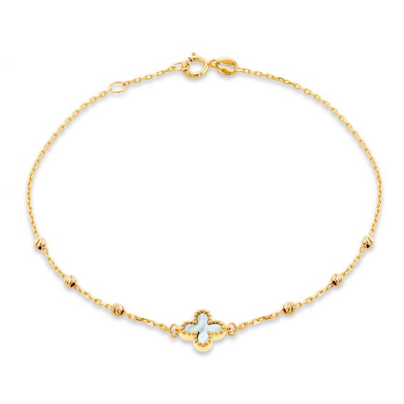 9 carat yellow gold beaded petal clover gold bracelet