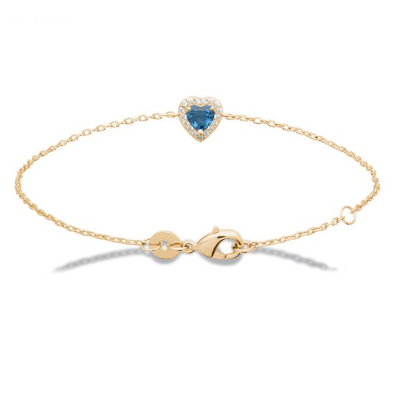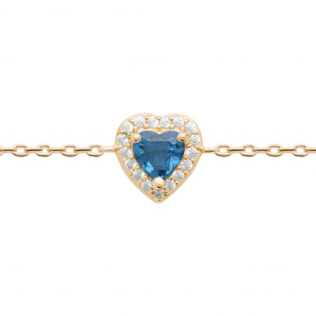 Bijou argent/plaqué or Gold-plated sapphire blue stone heart bracelet