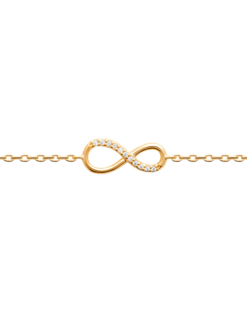 A symbol of eternal love, this 18k gold-plated infinity bracelet captivates with its delicate and luminous design. The infinity motif is partially set with sparkling white zirconia, for a look that's both understated and refined.