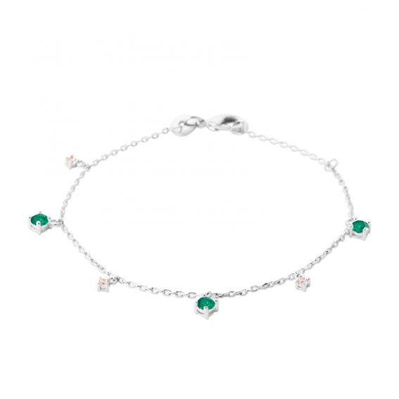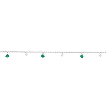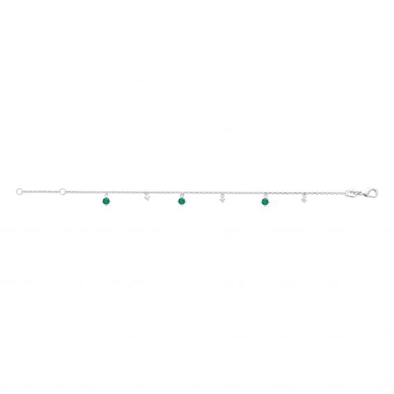Bijou argent/plaqué or Adjustable silver bracelet with emerald-colored stones – Delicate and inexpensive women's jewelry