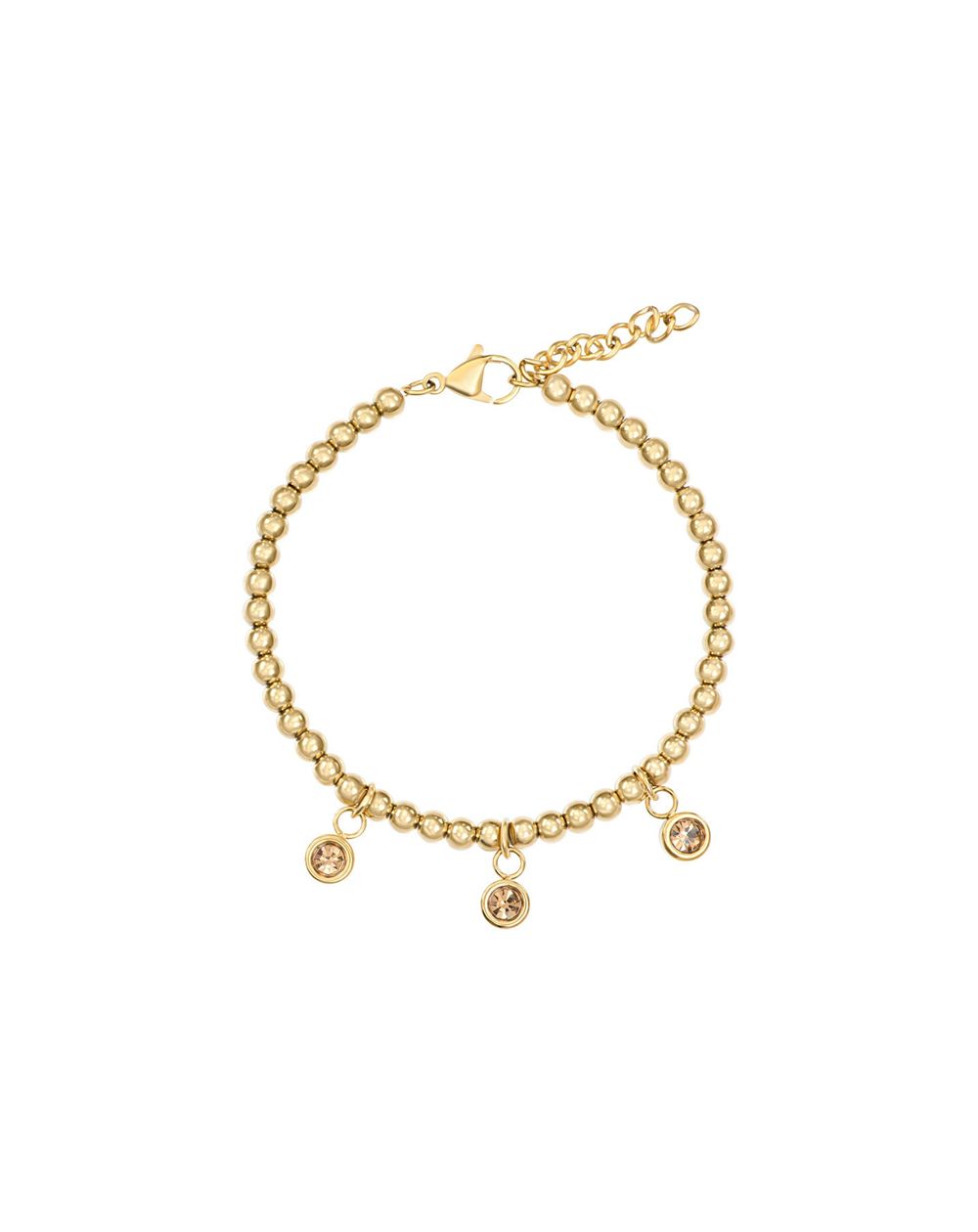 The iXXXi Dot Topaz bracelet captivates with its subtle sparkle and refined design. Composed of gold-plated stainless steel beads , it is delicately adorned in its center with three topaz-colored cubic zirconia stones , adding a luminous and elegant touch to your wrist.
