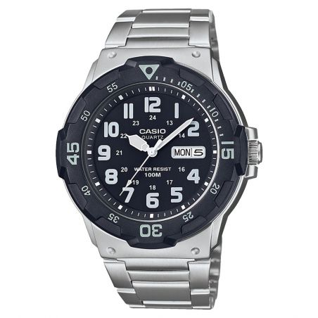 This watch MRW-200HD-1BVEF CASIO is a man's watch whose wicker is a quartz/battery mechanism. The glass of this watch is a mineral glass having undergone a heat treatment to make it rescuing to scratches. The bracelet of this Casio watch is a steel bracelet.