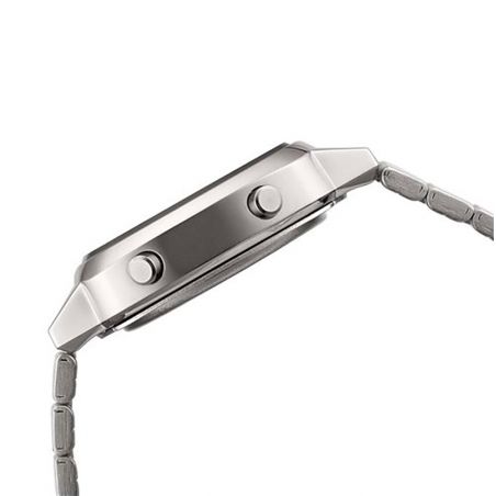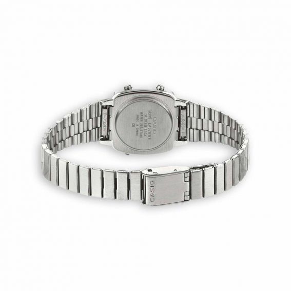 This watch la670wea-1ef Casio is a mixed watch, the wicked of which is a quartz/pile wicker. The glass of this watch is a mineral glass having undergone a heat treatment to make it rescuing to scratches. The bracelet of this Casio watch is a steel bracelet.