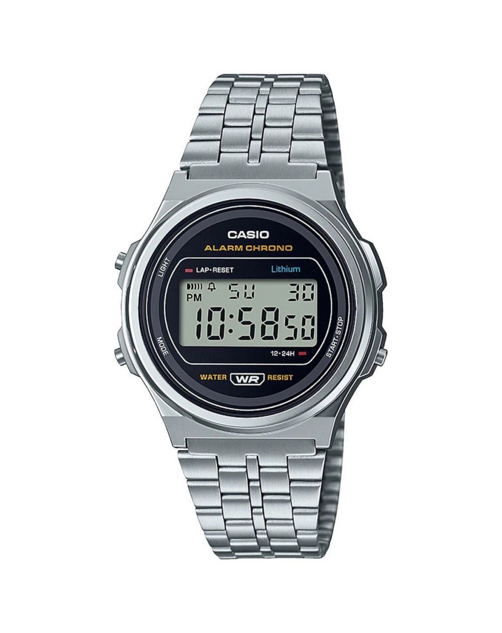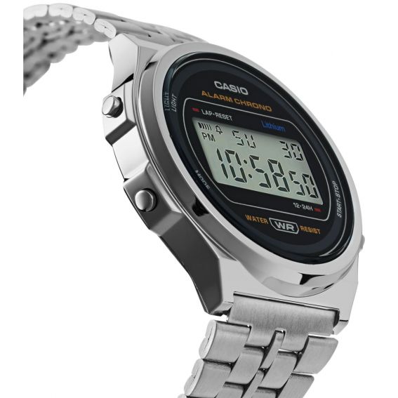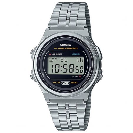 This watch a171we-1aef of Casio brand is a mixed watch whose wickedness is a quartz/battery mechanism. The glass of this watch is a mineral glass having undergone a heat treatment to make it rescuing to scratches. The bracelet of this Casio watch is a steel bracelet.