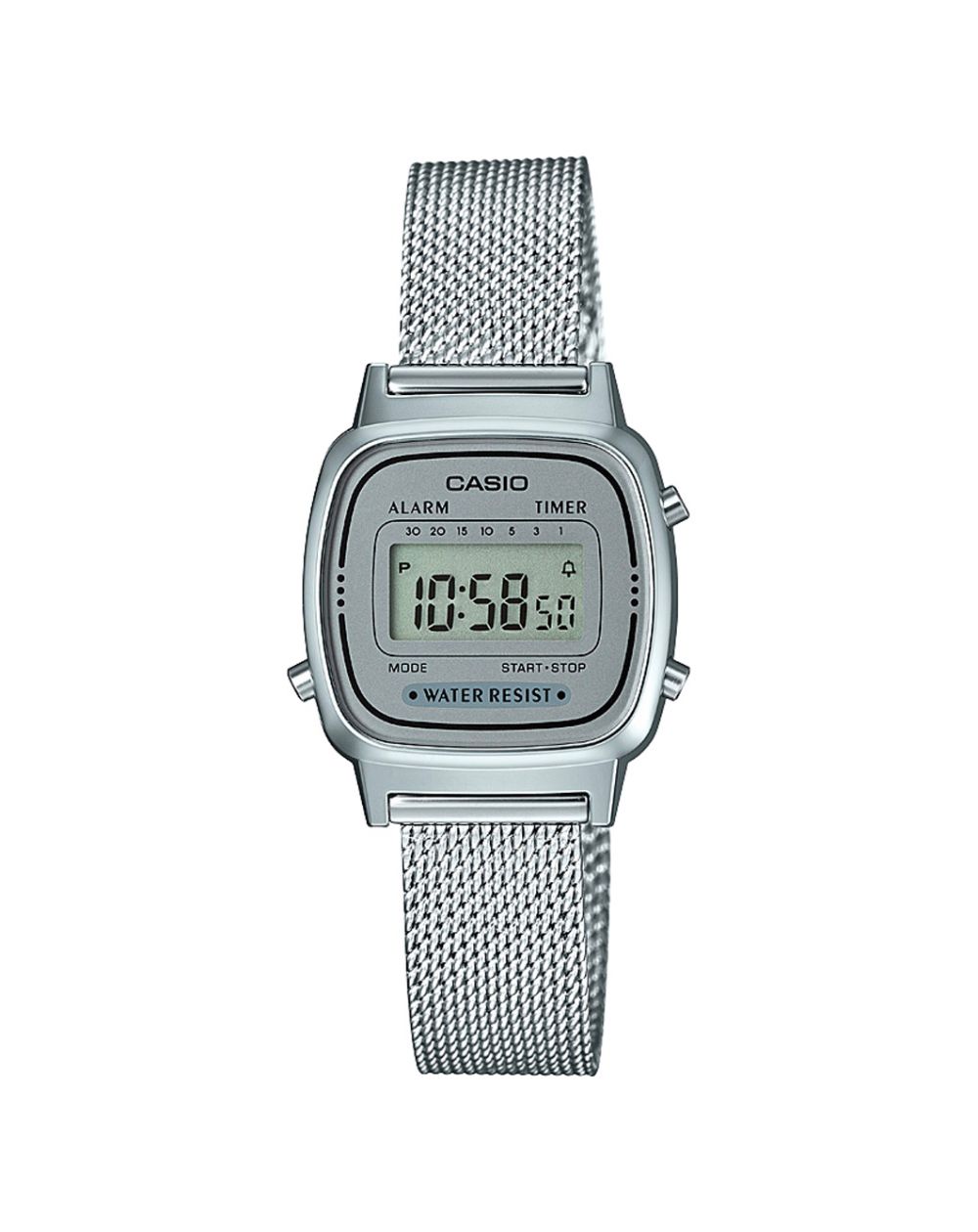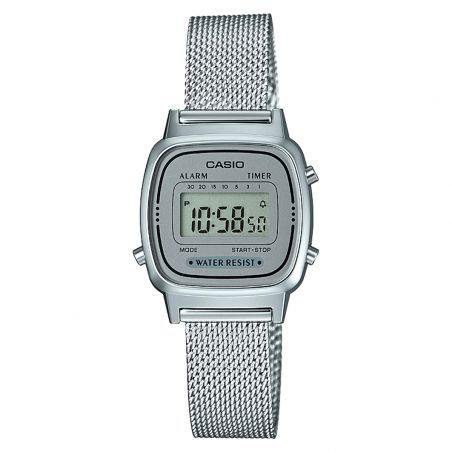 Discover timeless elegance with this vintage Casio LA670WEM-7EF watch with a classic design, enhanced by nostalgic hues. The subtle shades of gray of the dial bring a touch of urban-retro elegance, perfectly harmonized with the square case and the metal bracelet.