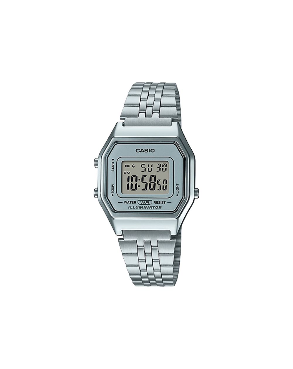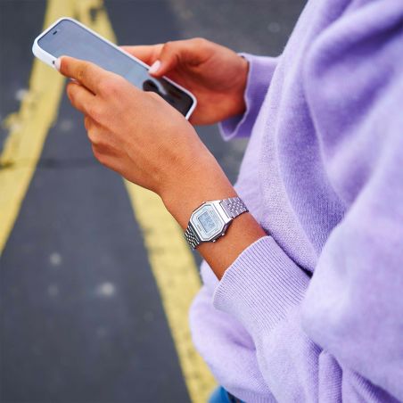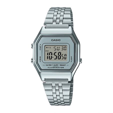 This Casio vintage silver LA680WEA-7EF watch features a 28.6mm case diameter and is fitted with a silver metal bracelet. Featuring a Casio movement and mineral crystal dial, it combines durability and style.