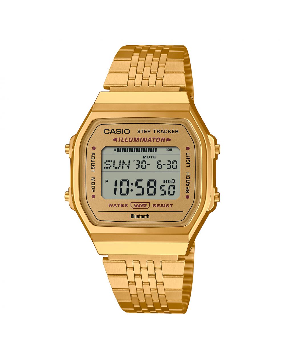 The Casio Bluetooth ABL-100WEG-9AEF combines retro elegance and modern technology to offer you a unique watch. With its 41.6 × 37.9 × 8.2 mm gold case and a stainless steel bracelet with gold ion plating, this watch stands out for its vintage style, while remaining comfortable thanks to its adjustable clasp. The weight of only 60g ensures lightness on the wrist, and the waterproofness allows you to wear it with complete peace of mind.
