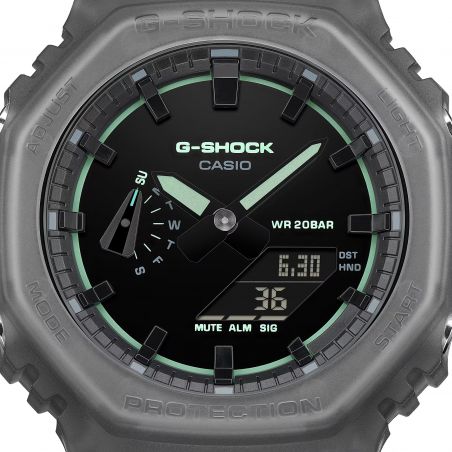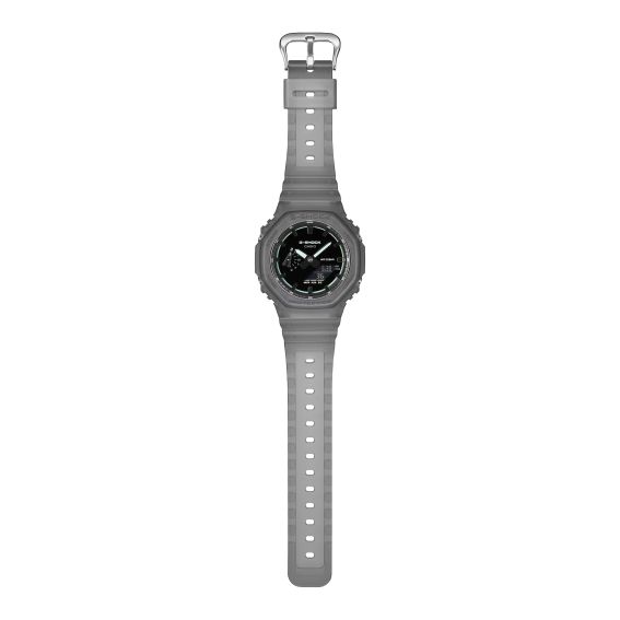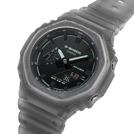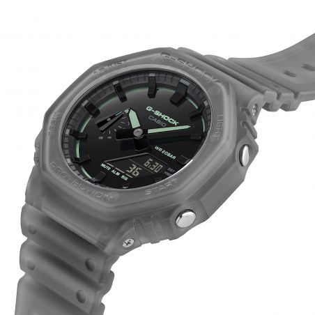 The Casio G-SHOCK GA-2100 reinterprets the iconic G-SHOCK robustness in a modern, sleek, and ultra-trendy version. Its translucent gray octagonal case , a signature of the GA-2100 series, brings an urban and technical style while retaining the brand's legendary durability.
