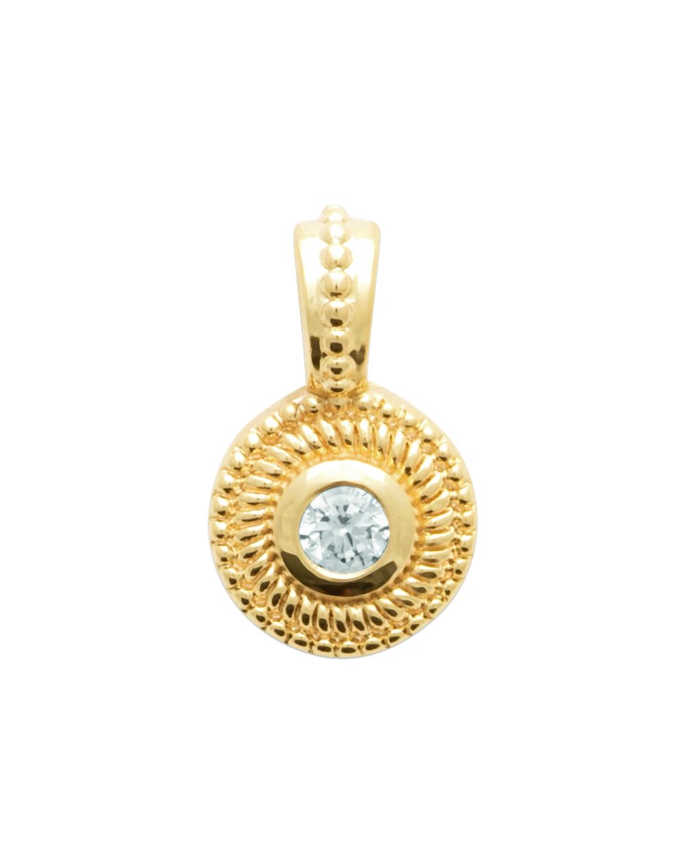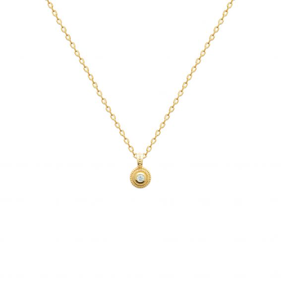 This pendant is an 18-carat gold-plated pendant, made up of a disc and a stone.