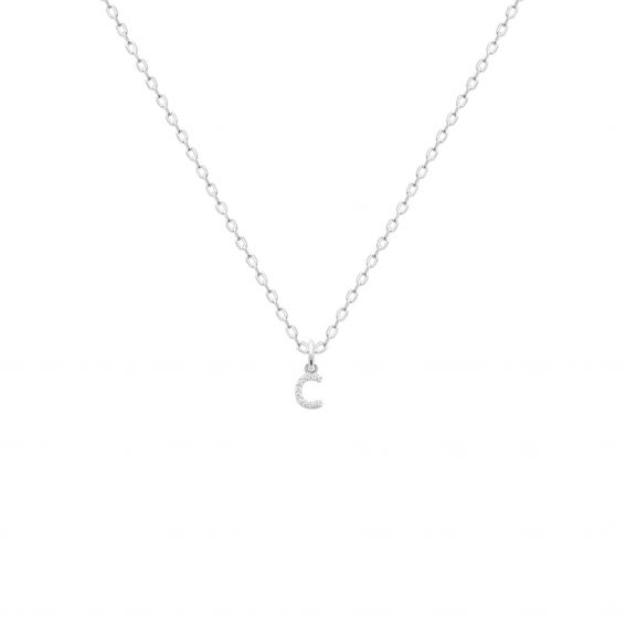 This refined pendant in the shape of the letter "C" is made of rhodium-plated silver and adorned with sparkling zirconiums. The silver finish and shiny stones add a touch of elegance and sophistication, ideal for personalizing your necklace. Perfect for everyday use or for special occasions, this pendant is also an ideal gift to express your affection in a unique and elegant way.