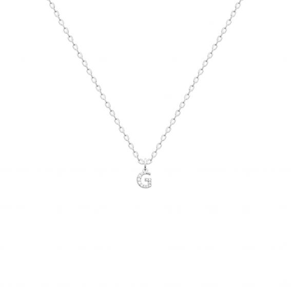 This pendant in the shape of the letter "G" is made of rhodium-plated 925 silver and encrusted with sparkling zirconiums. The silver finish and shiny stones add a touch of sophistication and elegance, perfect for personalizing your necklace. Ideal for everyday use or for special occasions, this pendant is also an ideal gift to express your affection in a unique and refined way.