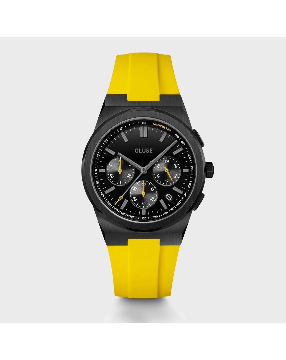This watch stands out for its bold and energetic look thanks to the combination of black and yellow. It's perfect for sports activities and casual wear while offering practical features such as the chronograph and tachymeter. Its modern design and silicone strap make it an ideal choice for those looking for a sturdy and stylish watch.