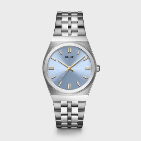 Retro 70's Watch Steel, Light Blue, Silver Color