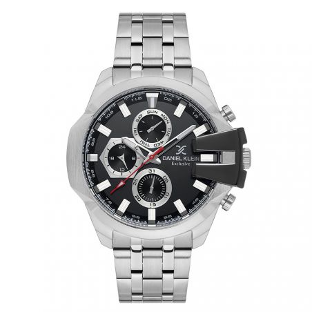 The Daniel Klein DK.1.13803-1 multifunction watch offers a modern and sophisticated design. Its black dial with silver details and stainless steel bracelet give it a timeless look.