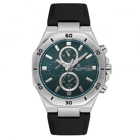This Daniel Klein men's watch from the Daniel Klein brand DK.1.14003-3 is a watch with a leather strap and a green background.
