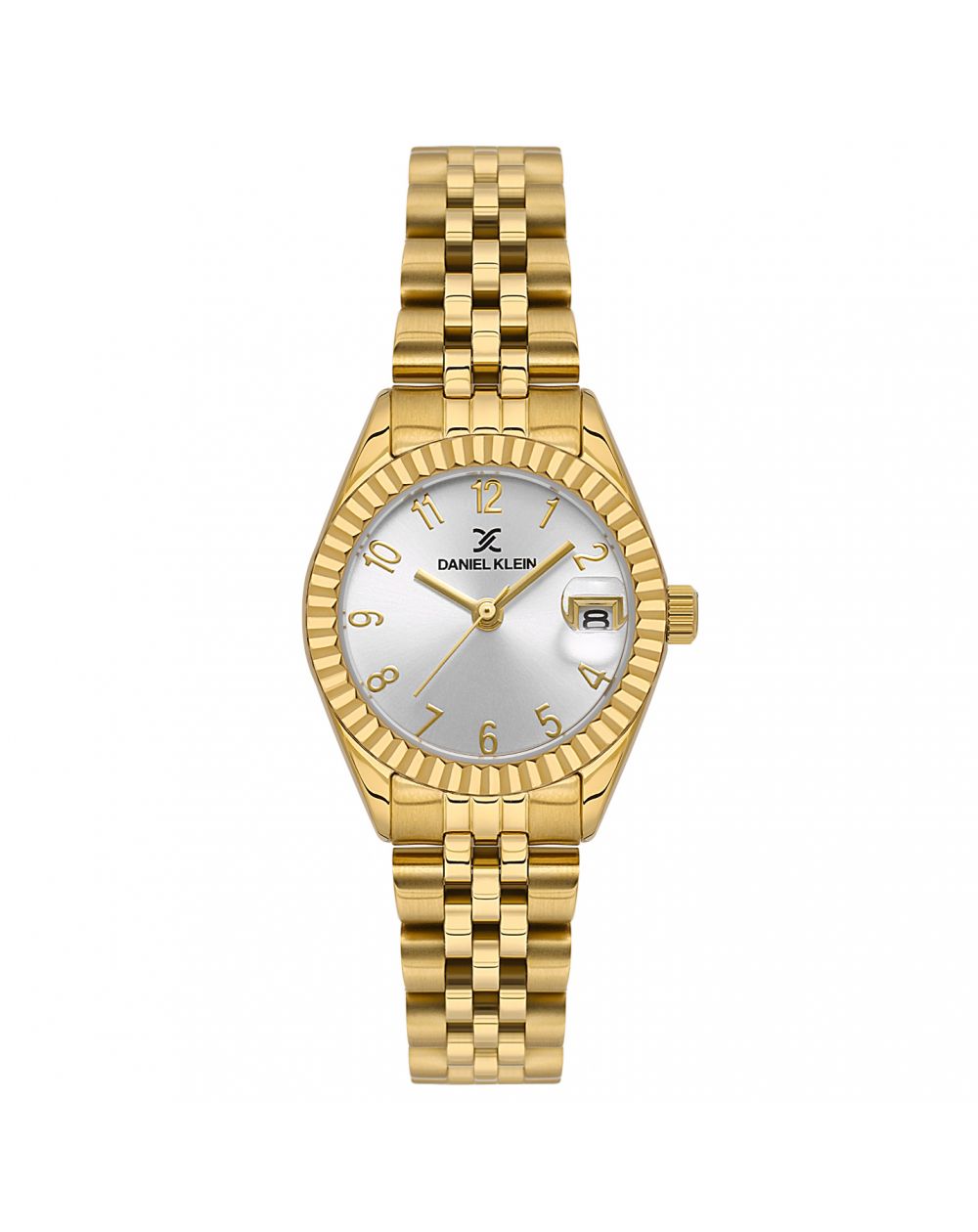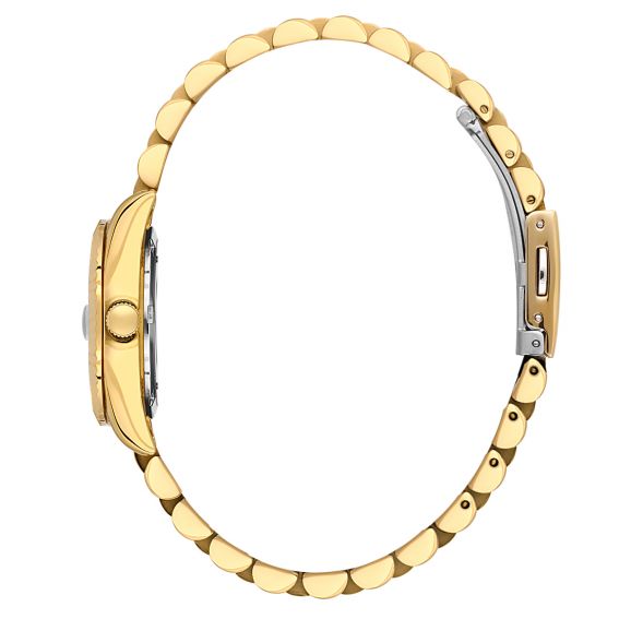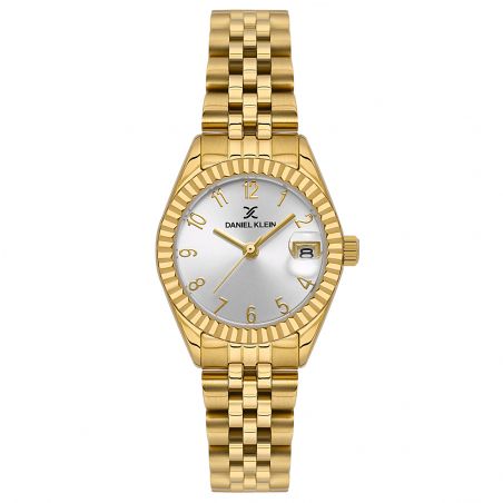 The Daniel Klein DK.1.13969-2 is a luminous and refined women's watch, perfect for those who wish to adorn their wrist with a touch of gold. Its 28 mm case boasts a delicate silhouette, entirely coated in a warm gold that lends it a luxurious and timeless look.