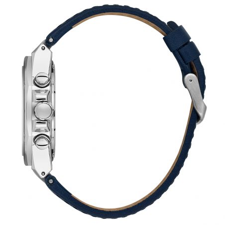 The silver hands and hour markers, perfectly contrasting against the blue dial, ensure optimal legibility. The white central hand enhances the sporty look of the model.