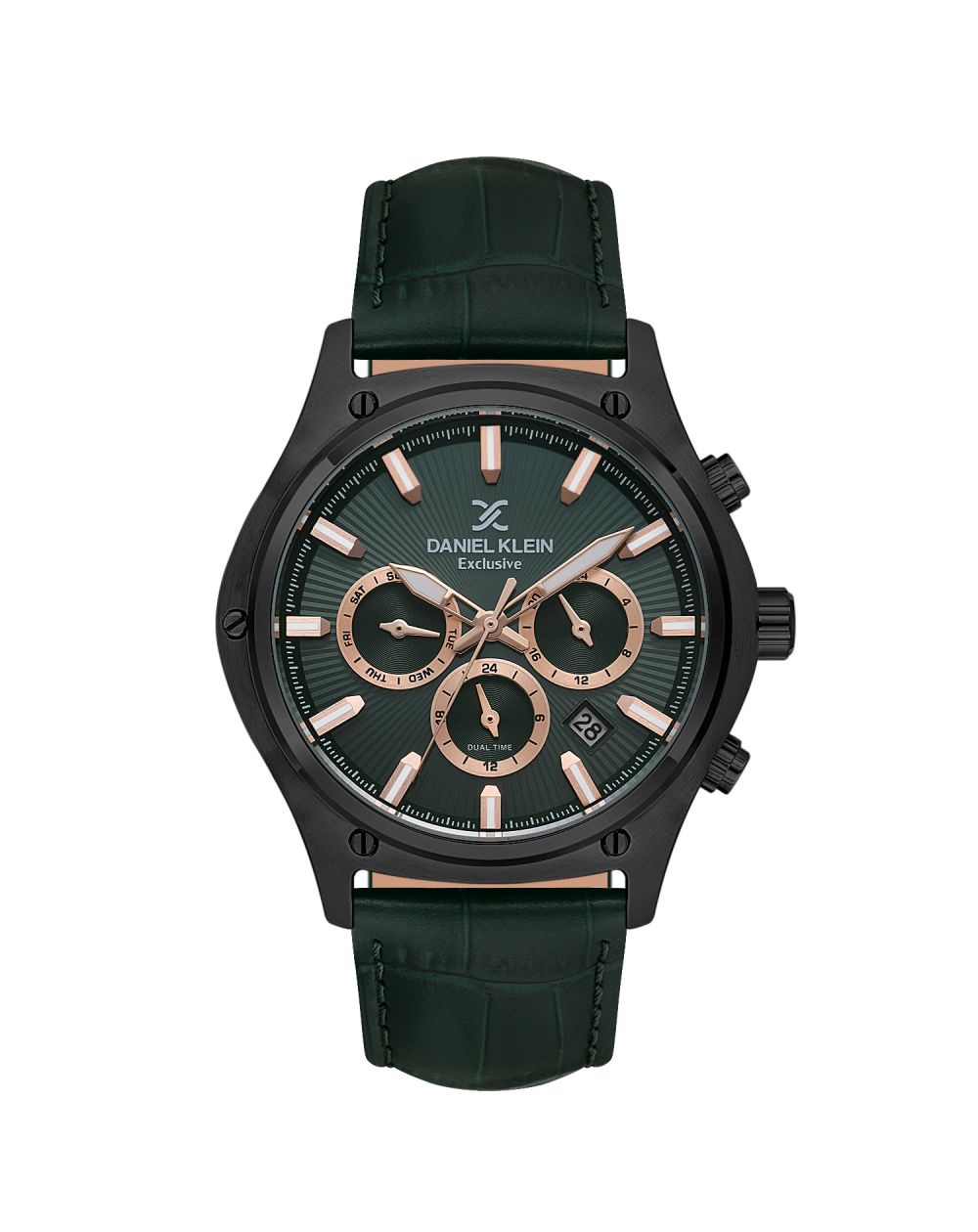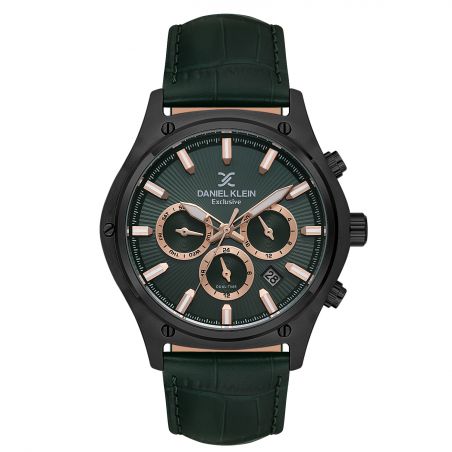 The Daniel Klein DK.1.14056-4 is a men's watch distinguished by its powerful and contemporary design. With its 44mm case in IP Black finish, it asserts a resolutely modern style, perfectly suited to the man who appreciates watches with a strong character. Its deep green dial, enhanced with rose gold hour markers and hands, creates a luxurious and trendy contrast, ideal for standing out on any occasion.