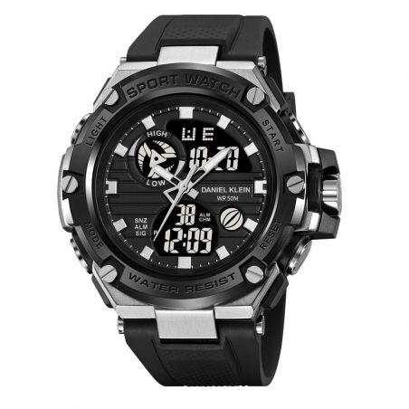 The Daniel Klein DK.2119-2 is a men's sports watch designed for those seeking a robust, functional, and visually striking accessory. Its large 55mm case , enhanced with silver details, asserts a technical style inspired by military and outdoor watches.