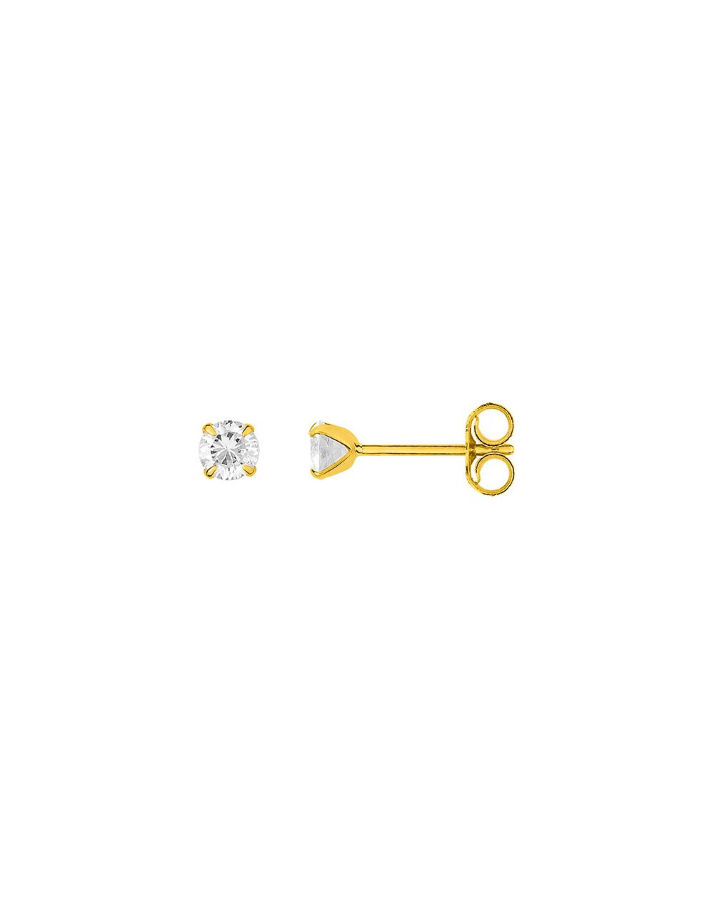 These 9 carat gold earrings are drills set with a zirconium oxide stone measuring 3.5mm in diameter.
