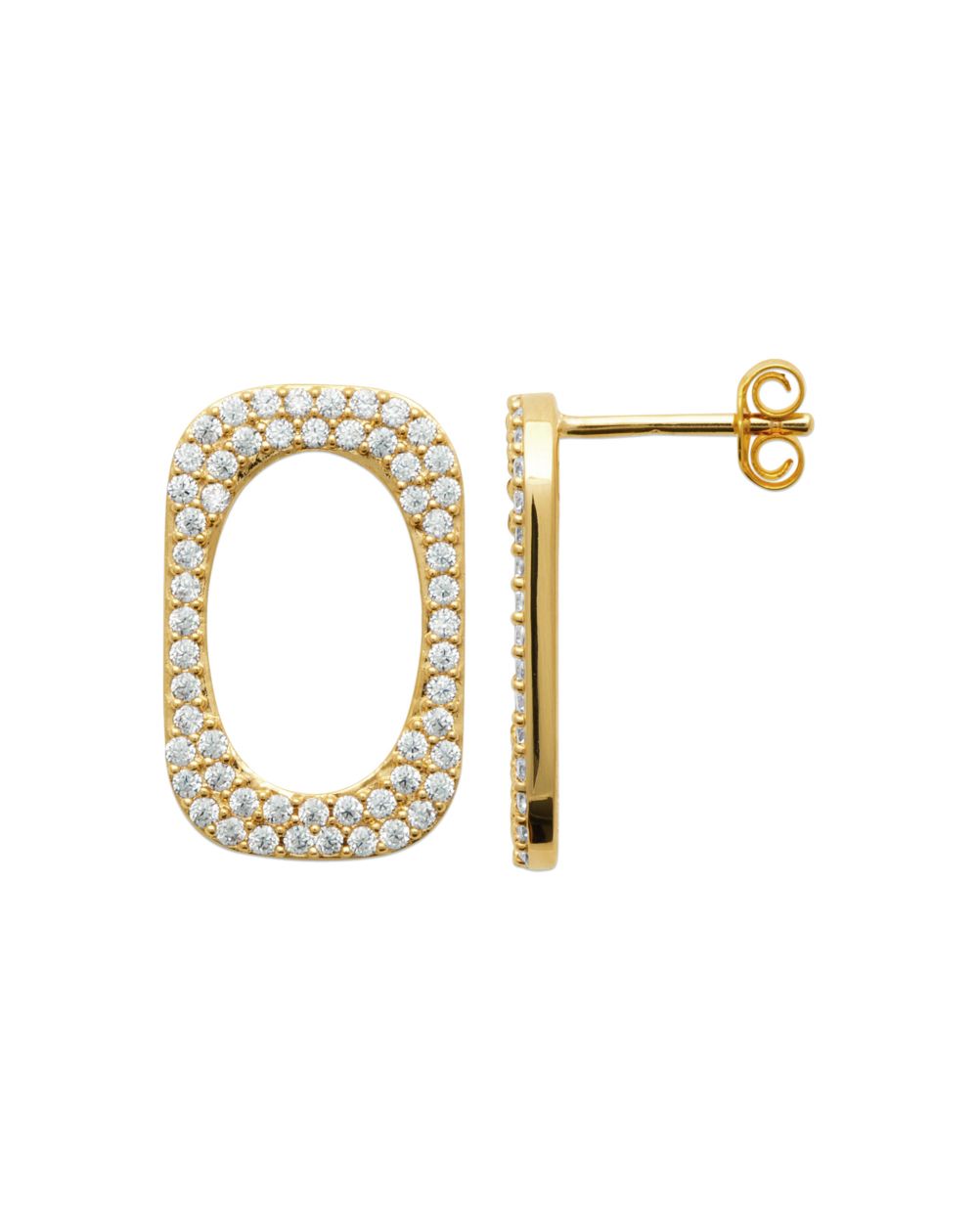 These 18k gold plated earrings are drills set with zirconium oxide stones.