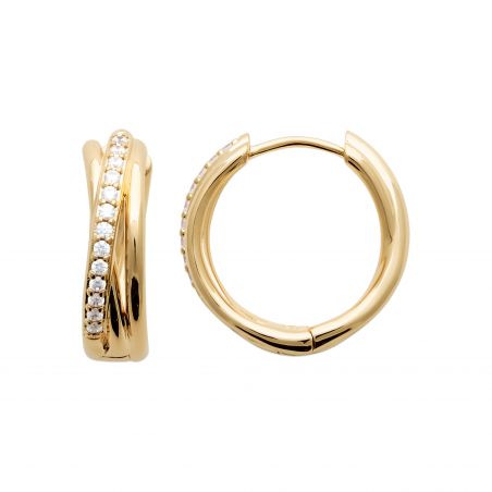These 18 carat gold plated earrings are hoop earrings set with zirconium oxide stones.