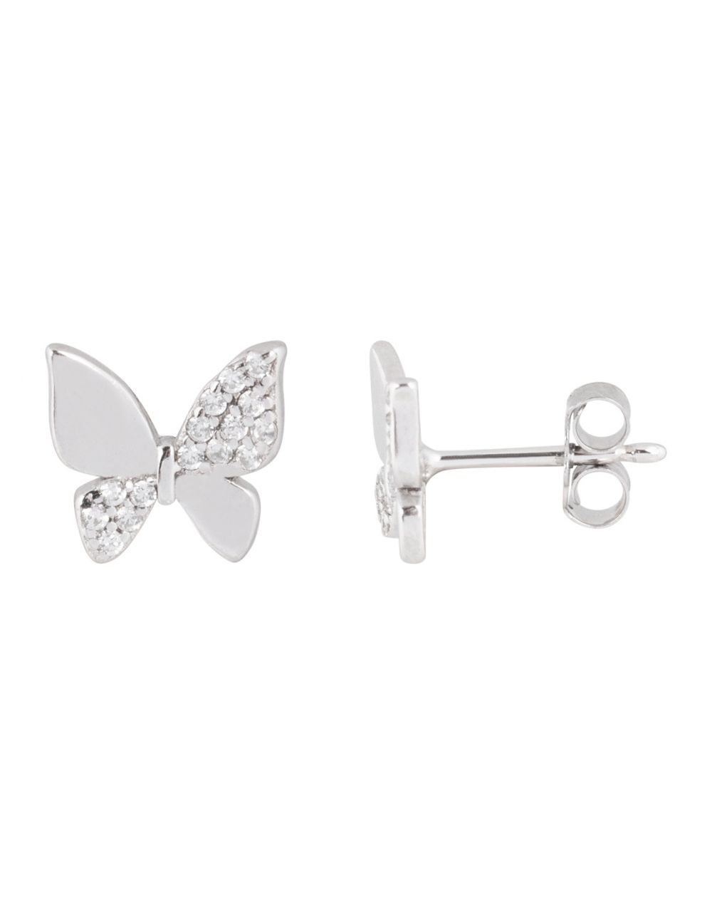 These 925 silver earrings are butterfly-shaped drills, part of which is set with zirconium oxide stones. These measure 9mm in diameter.