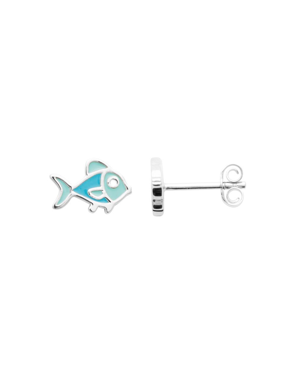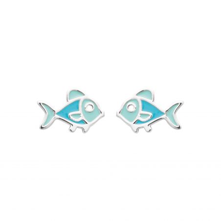 Bijou argent/plaqué or 18k gold plated blue enameled fish necklace