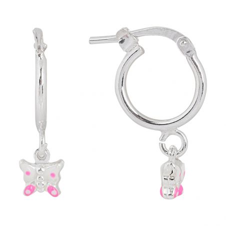 These 925 silver earrings are children's hoop earrings with a small enameled butterfly measuring 7mm in diameter.