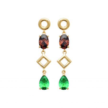 These 18-carat gold-plated earrings are elongated oval-shaped gemstone earrings.
