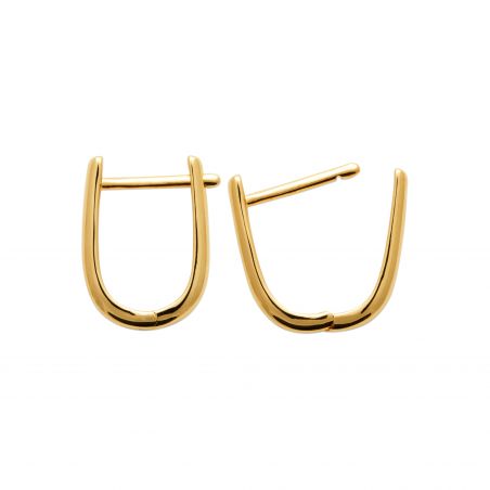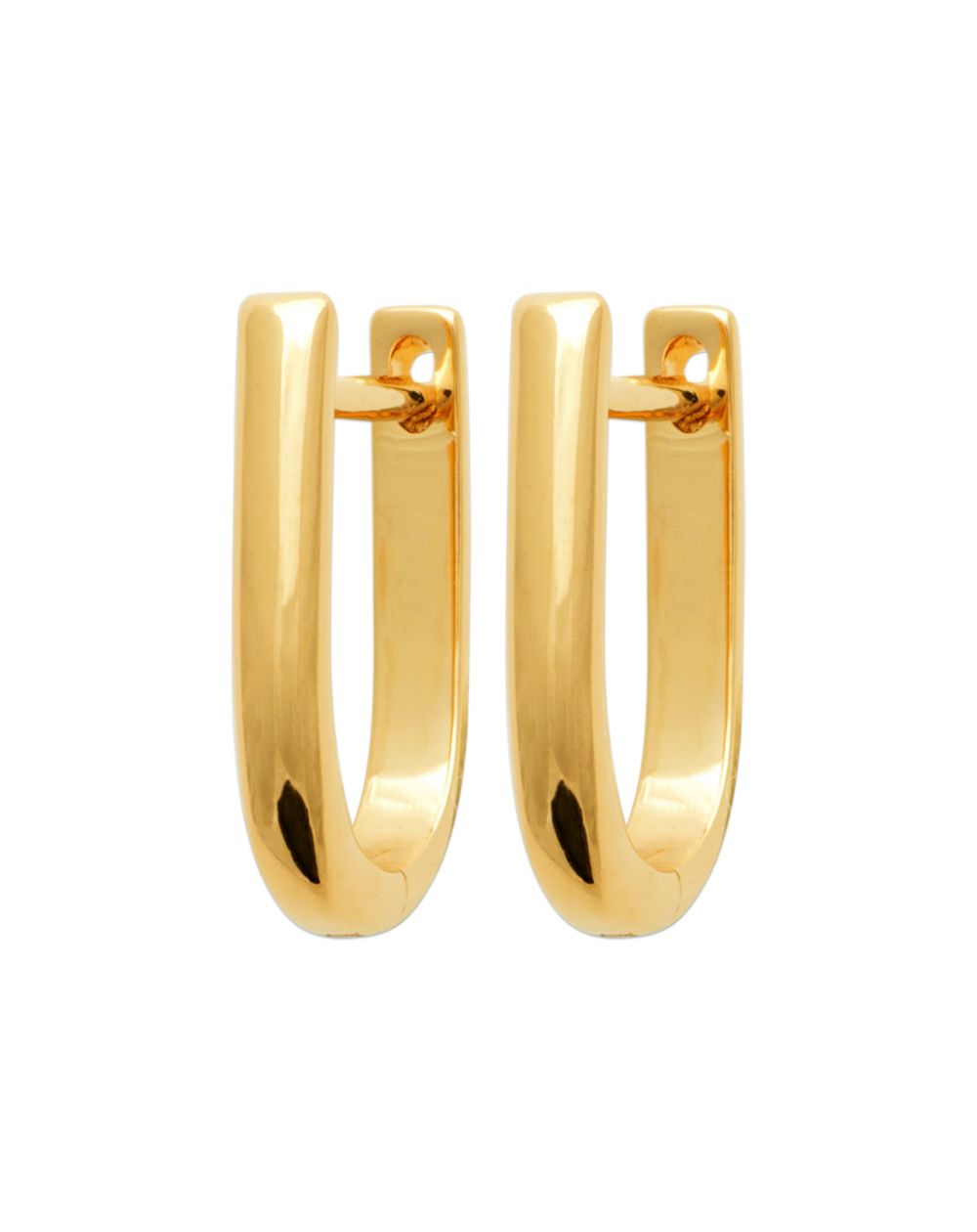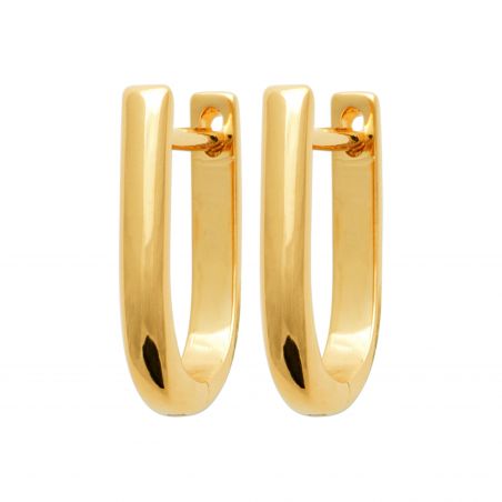 These 18k gold plated earrings are smooth, elongated hoop earrings.
