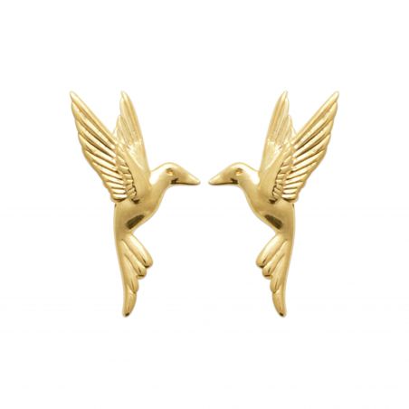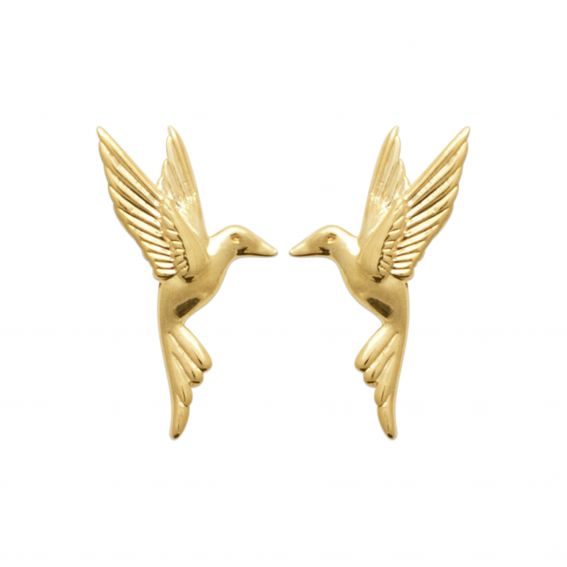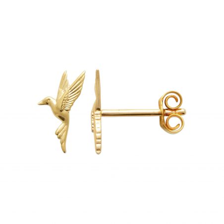 These 18k gold plated earrings are drills with a flying hummingbird.