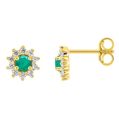Bijoux or et personnalisé 9k gold emerald and zirconium earrings
