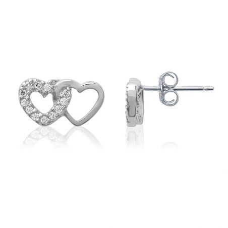 Bijou argent/plaqué or 925 silver double heart earrings