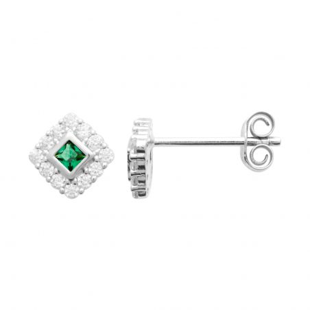 Bijou argent/plaqué or Silver earrings with a square green stone – Elegant and luminous style