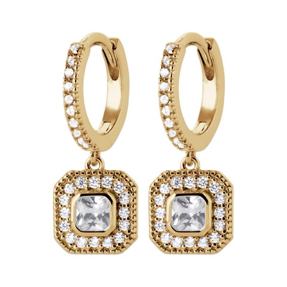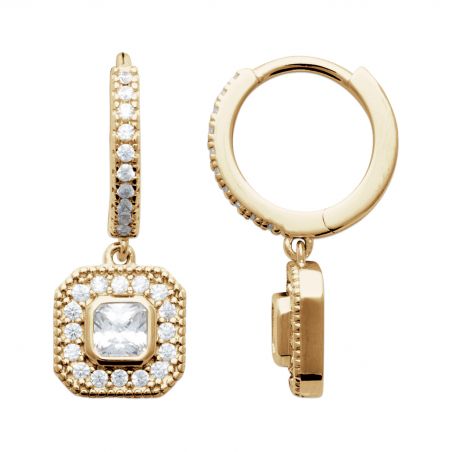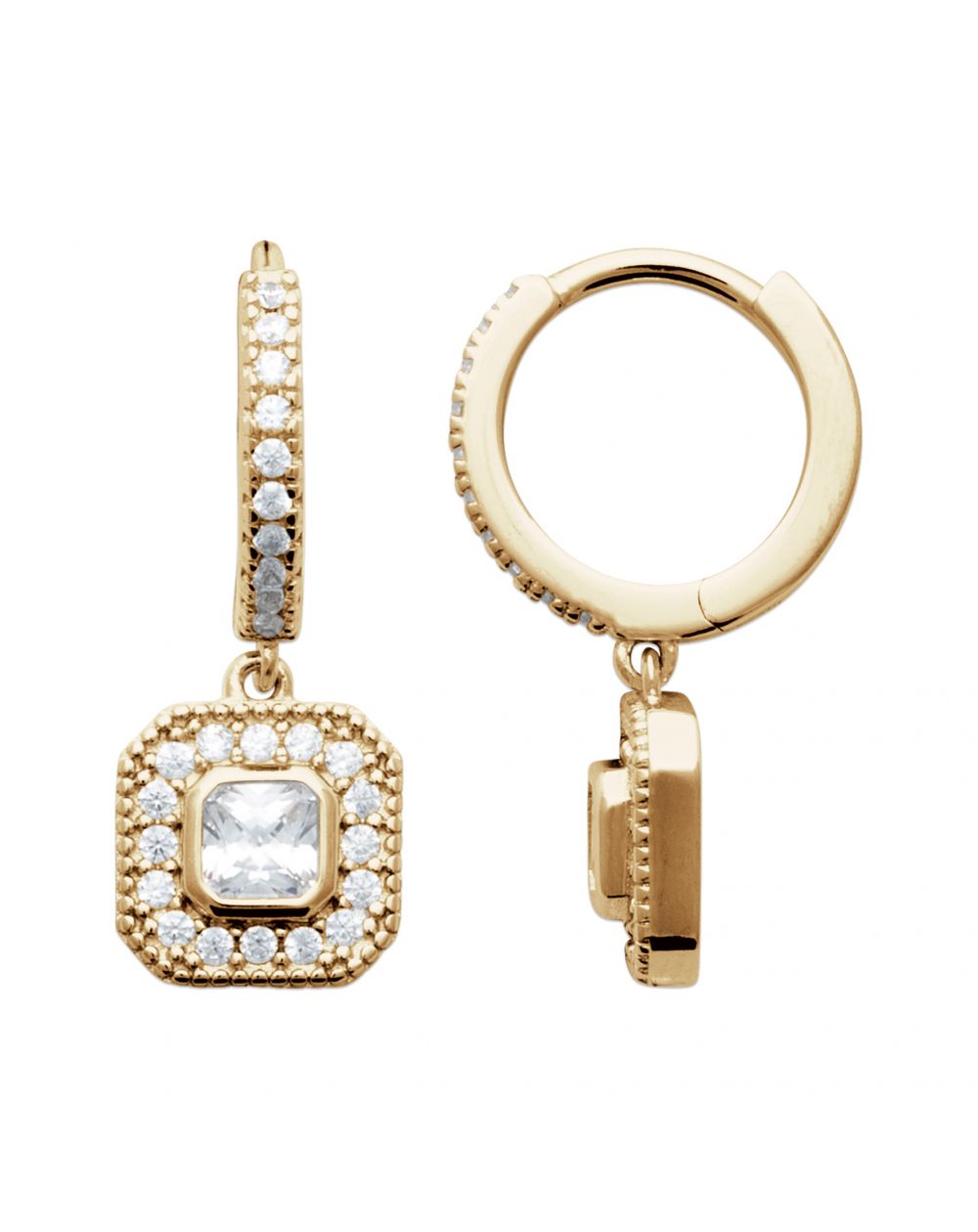 10mm 18k gold-plated hoop earrings with a square cubic zirconia pendant