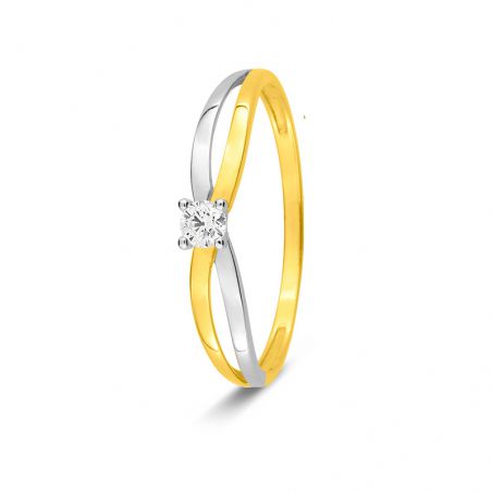 The solitaire crossed in two 9 carat gold is a solitaire set with a zirconium stone.