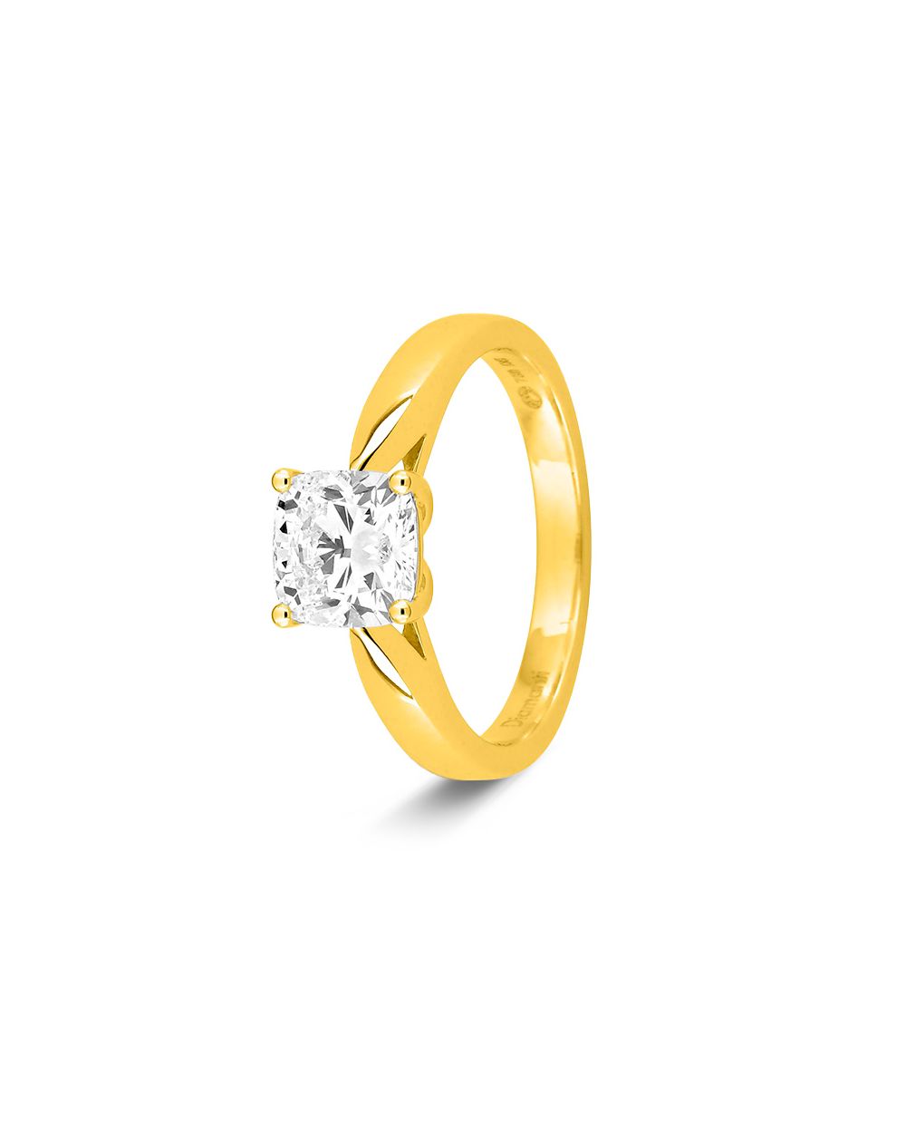 Solitaire ring with 1.50 ct F-VS synthetic diamond – 18k yellow gold