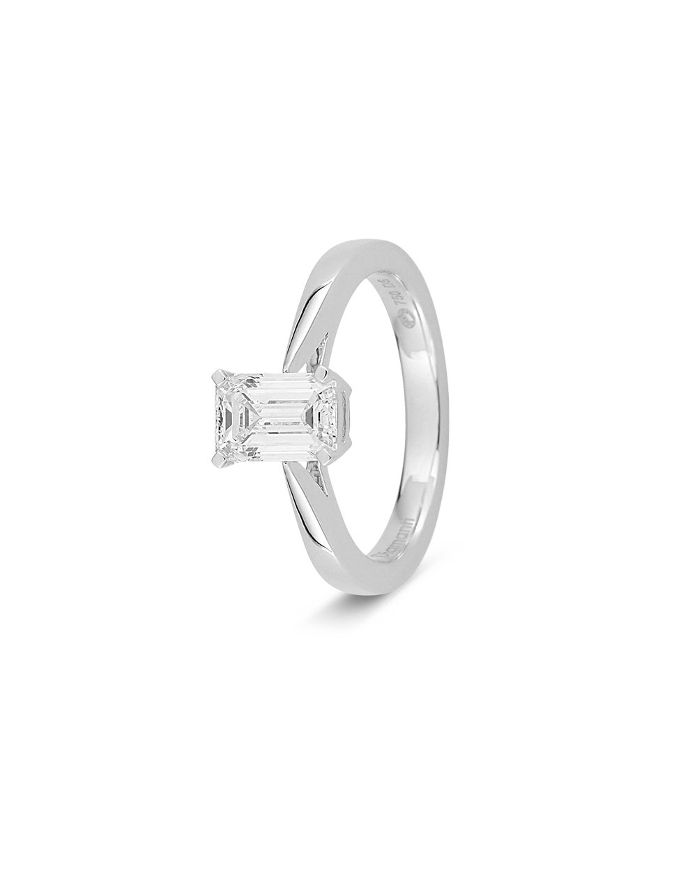 Emerald-cut lab-grown diamond solitaire ring, 1 carat – 18k F-VS certified white gold