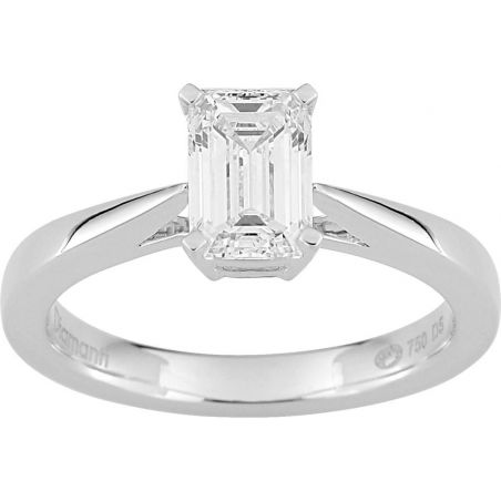 Refined and sophisticated, this solitaire ring in 18-karat white gold (Au 750) showcases a lab-grown emerald-cut diamond weighing at least 1.00 carat . Its iconic rectangular cut captivates with its clean lines and elegant brilliance, offering a resolutely modern and timeless style.
