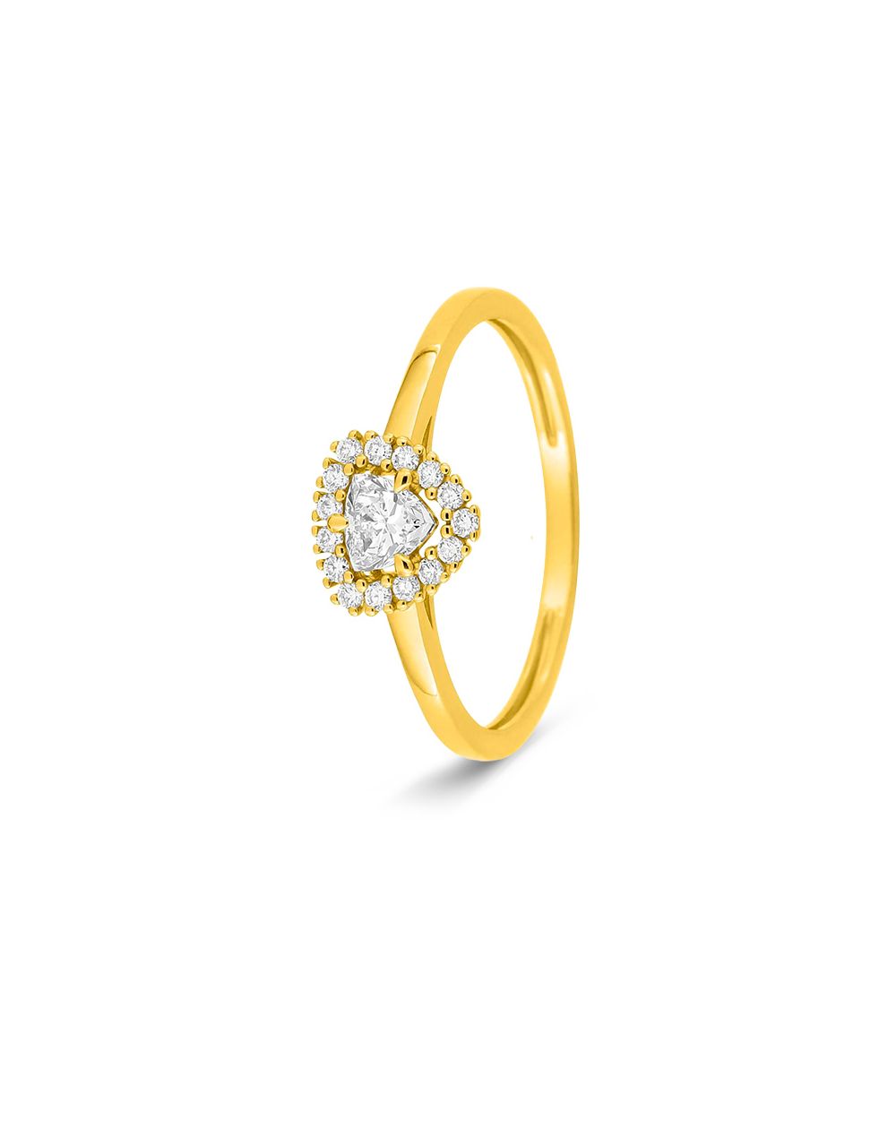 Bold and elegant, this 9-karat (375) yellow gold ring showcases a 0.20-carat trillion-cut lab-grown diamond , surrounded by a delicate halo of diamonds totaling 0.31 carats . Its modern triangular shape adds a graphic and contemporary touch, while maintaining a refined aesthetic.
