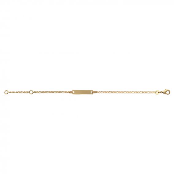 This high-quality 18-carat gold-plated number is a bracelet with a small plate that can be engraved on both sides with a first name and a date. The length of the bracelet is 15cm and is adjustable in length (13 or 15cm).