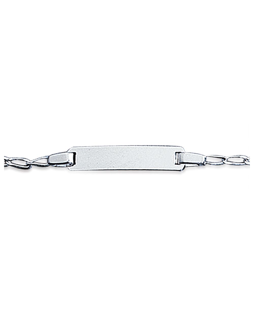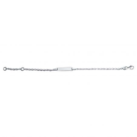 This rhodium-plated 925 silver number is a bracelet with a small plate that can be engraved on both sides with a first name and a date. The length of the bracelet is 15cm and is adjustable in length (13 or 15cm).